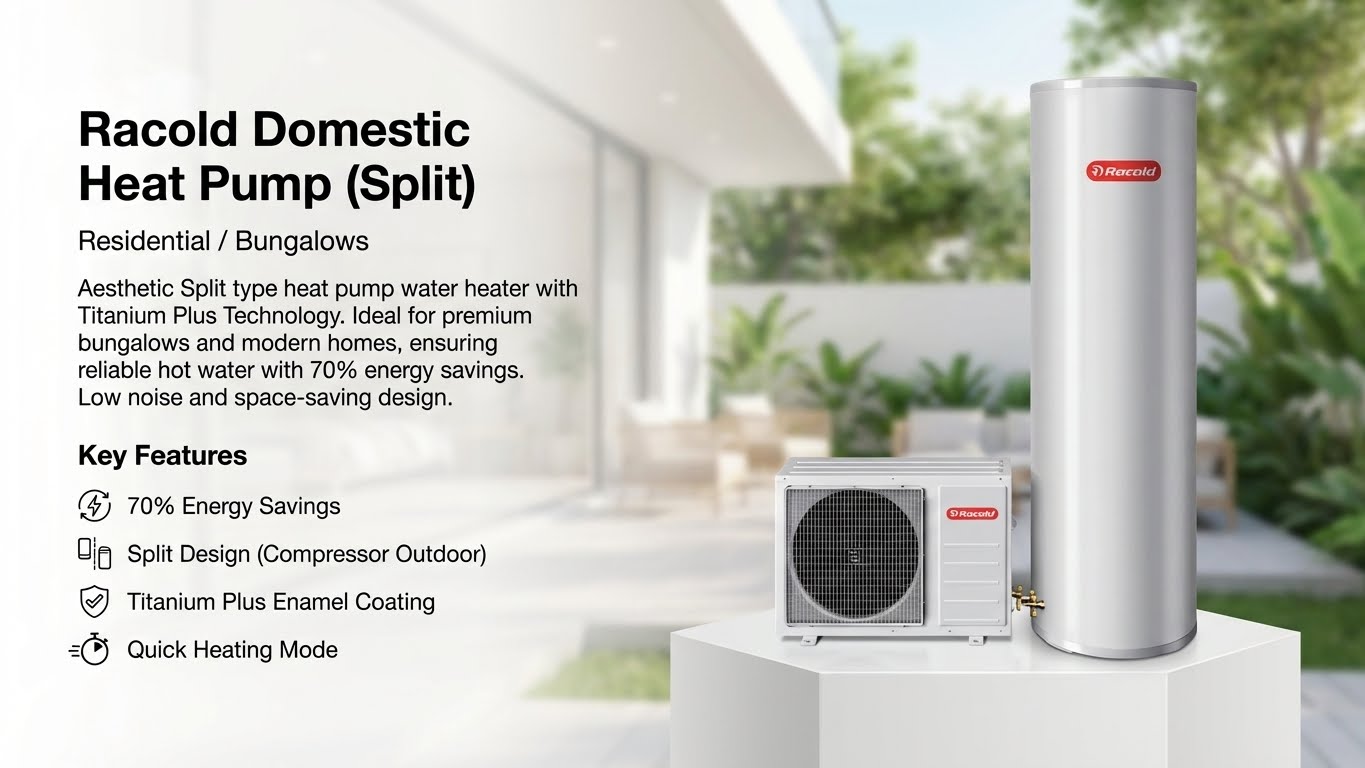 Discover why Racold Domestic Heat Pump (Split) is essential for modern homes. Learn about 70% energy savings, Titanium Plus Technology, installation benefits, and why Sai Enterprises is your trusted partner in Satara District.
